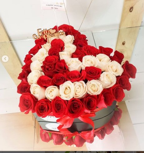 Sorprende con este espectacular arreglo floral en forma de corazón, elaborado con rosas rojas y blancas de la mejor calidad. Un detalle único y romántico, ideal para aniversarios, propuestas, San Valentín o cualquier ocasión especial. Disponible con envío a domicilio en Pereira.