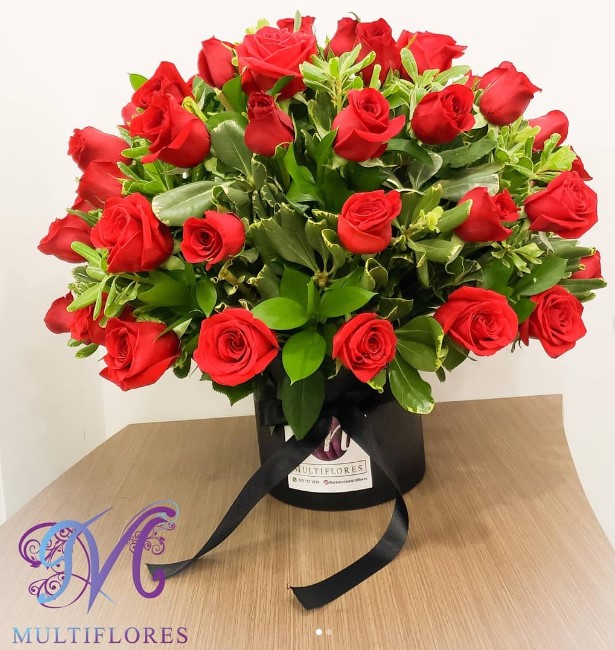Expresa tu amor y pasión con este lujoso arreglo de rosas rojas en una elegante base negra. Perfecto para aniversarios, cumpleaños o sorprender a esa persona especial. Entregas rápidas en Pereira.